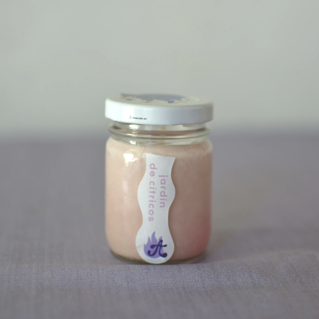 Vela de soja aromática artesanal. Presentación en frasco de vidrio con tapa metálica. Medidas: alto 6cm, ancho 4 cm. 90 g, aprox 20 horas de uso.